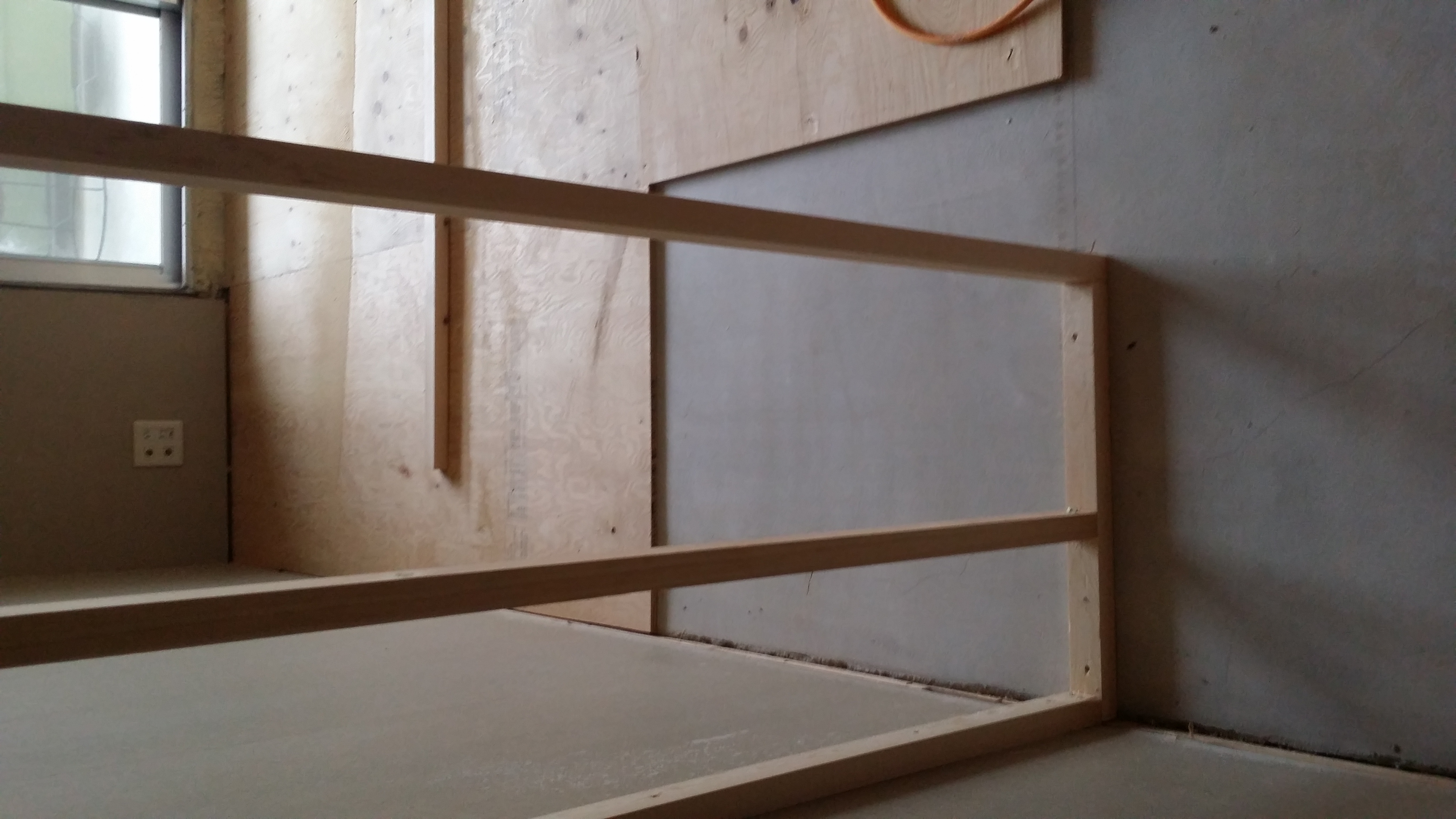 和室で畳だった空間を洋室にする為、仕上げの無垢フローリングを貼る前にベニヤを捨て貼りして、下地を作っています。