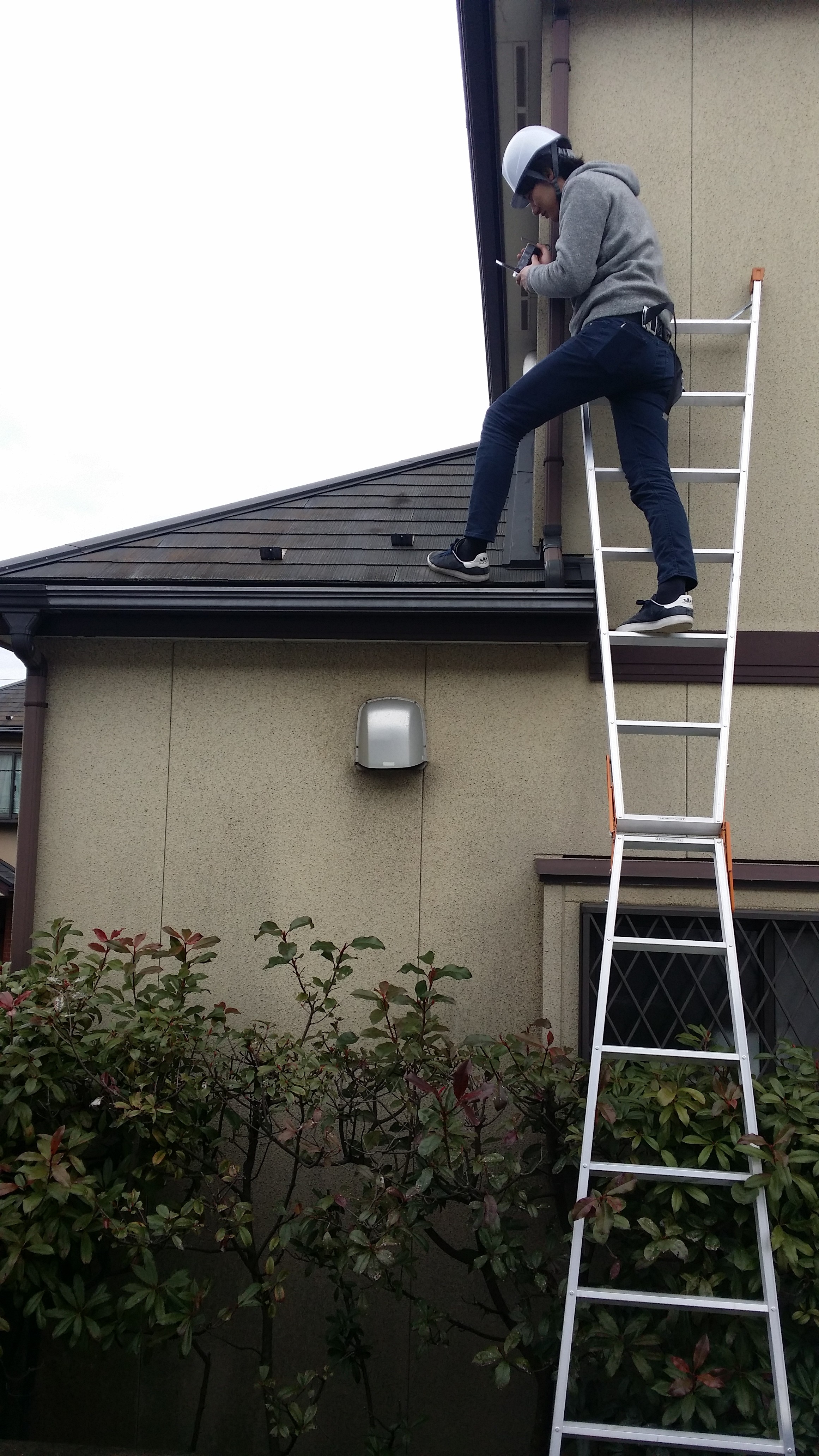 屋根の調査中。 ビデオで撮りますので、お客様も画像で状態を確認いただくことが出来ます。