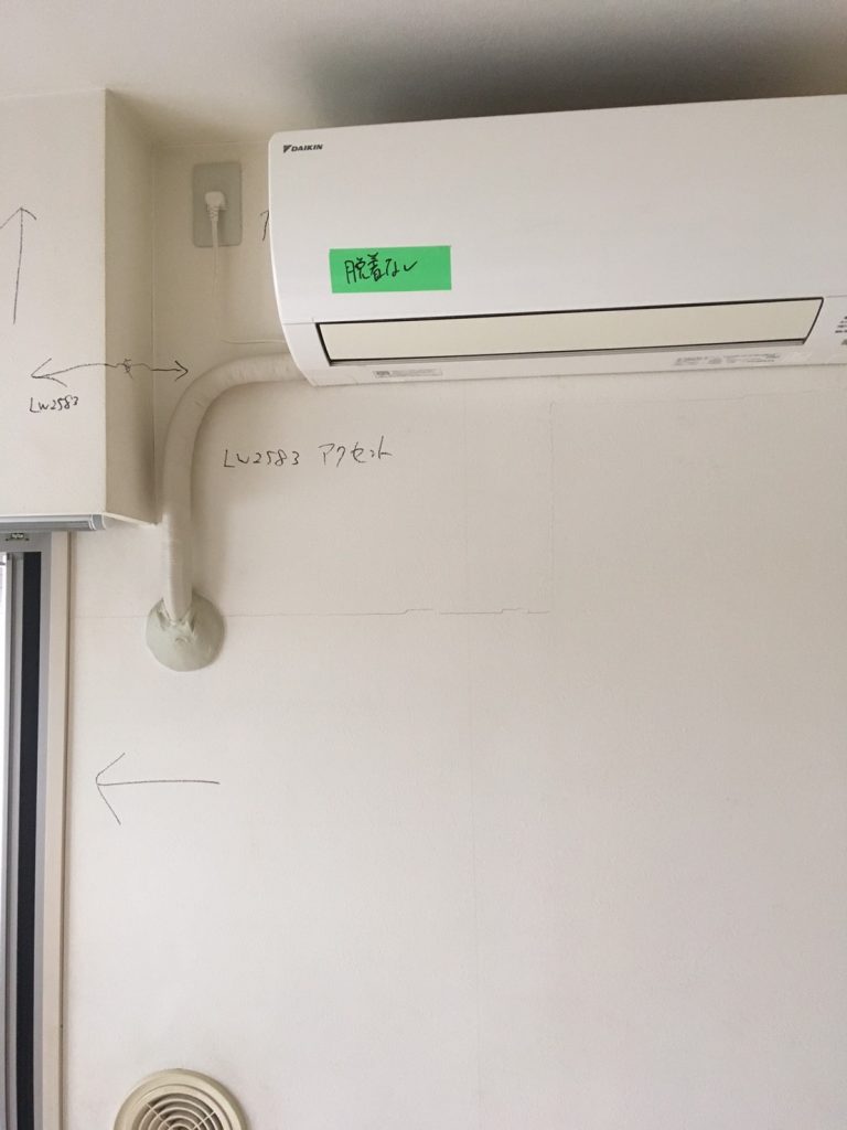 エアコンは外さなくても、梁の下まで綺麗に貼ることが出来ました。