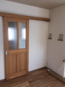 戸建の改装現場で、無垢の建具を2本取付いたしました。