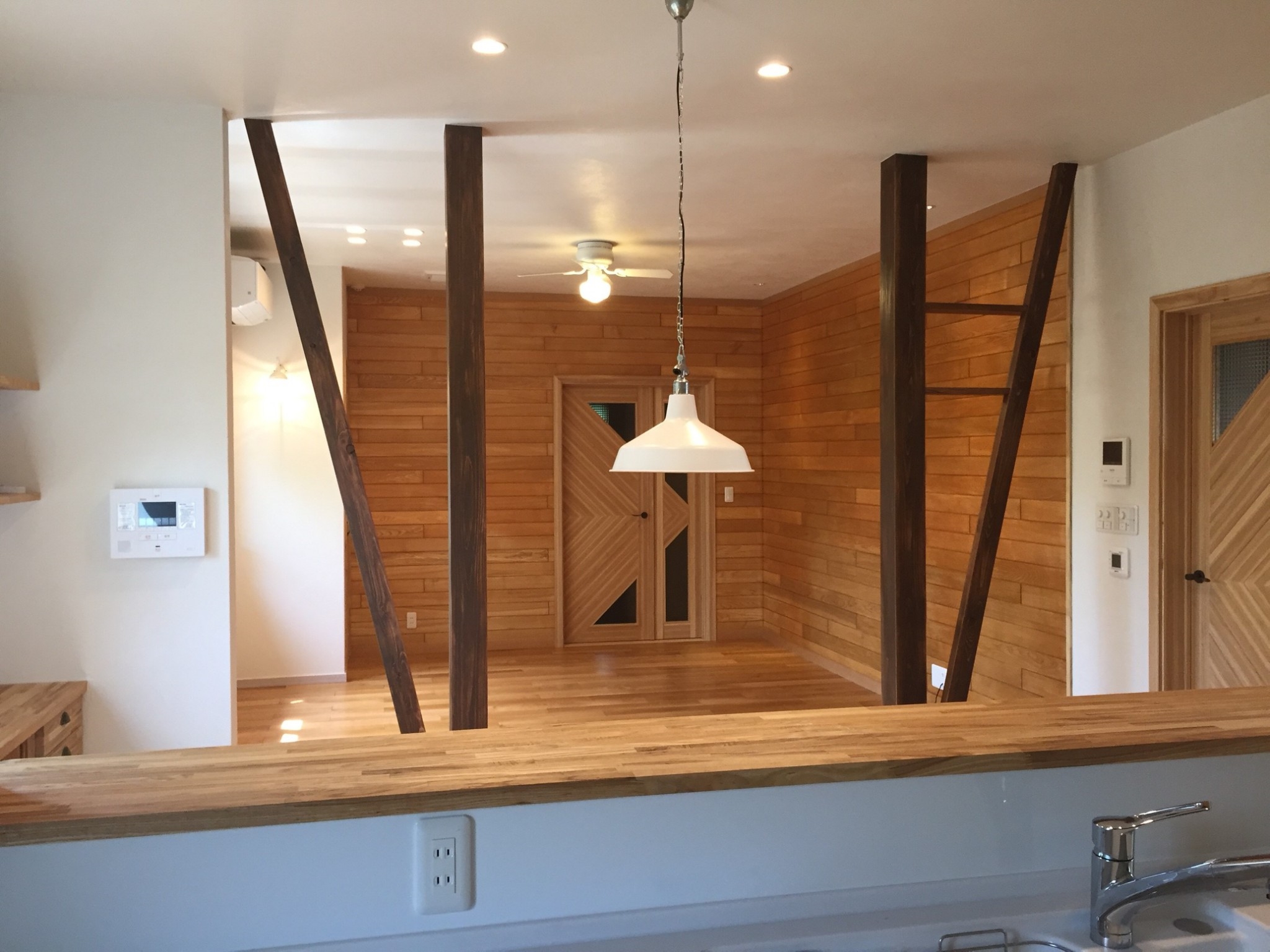 リビング側の羽目板は既存の物でペーパー掛けの上、クリアオイルを塗布し見た目も鮮やかになりました。