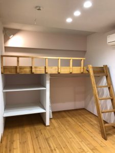 お部屋の新調に伴いロフトベッドも造作させて頂きました。