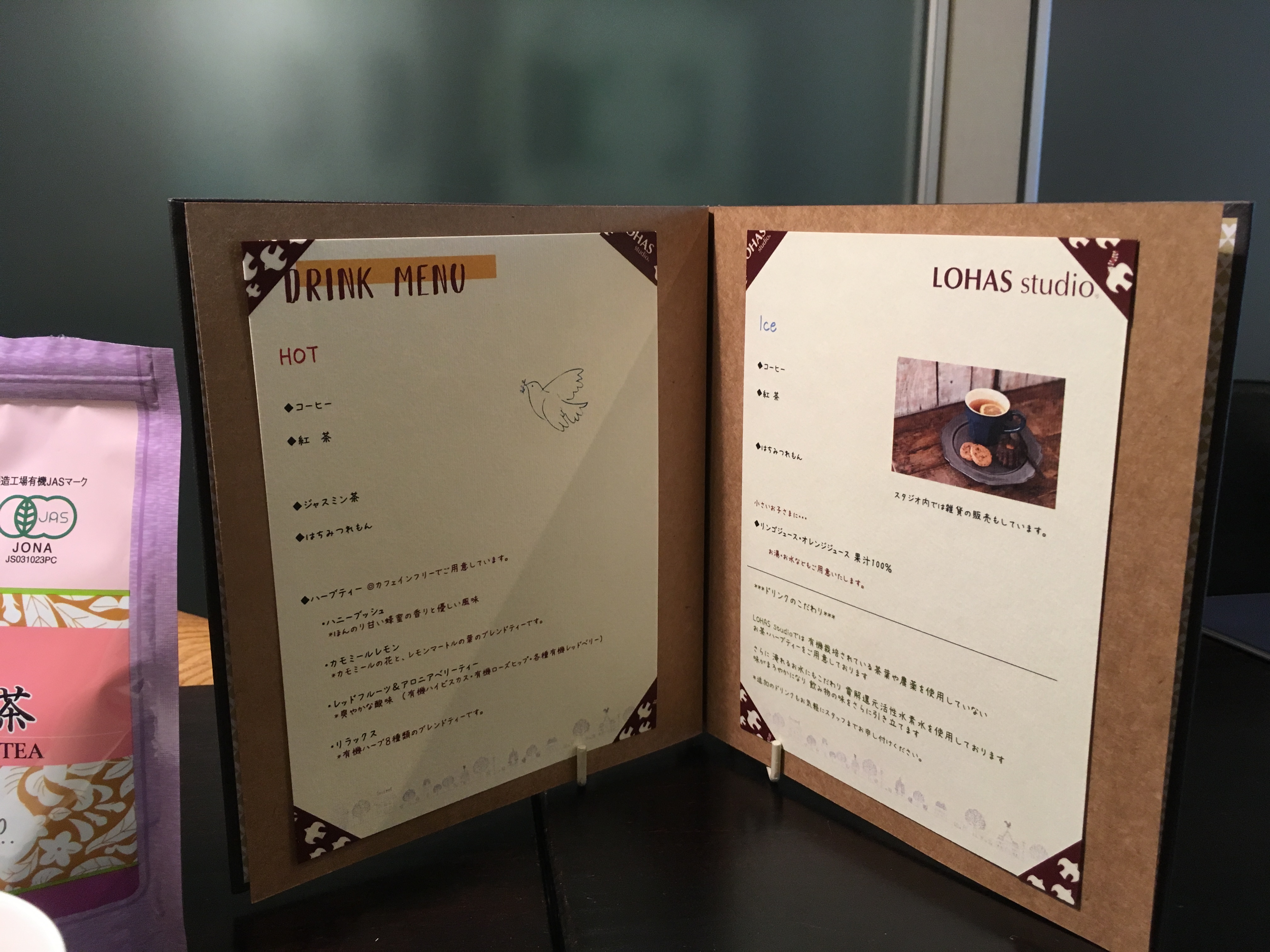 スタジオコーディネーターさんが素敵なドリンクメニュー表を作ってくれていました。