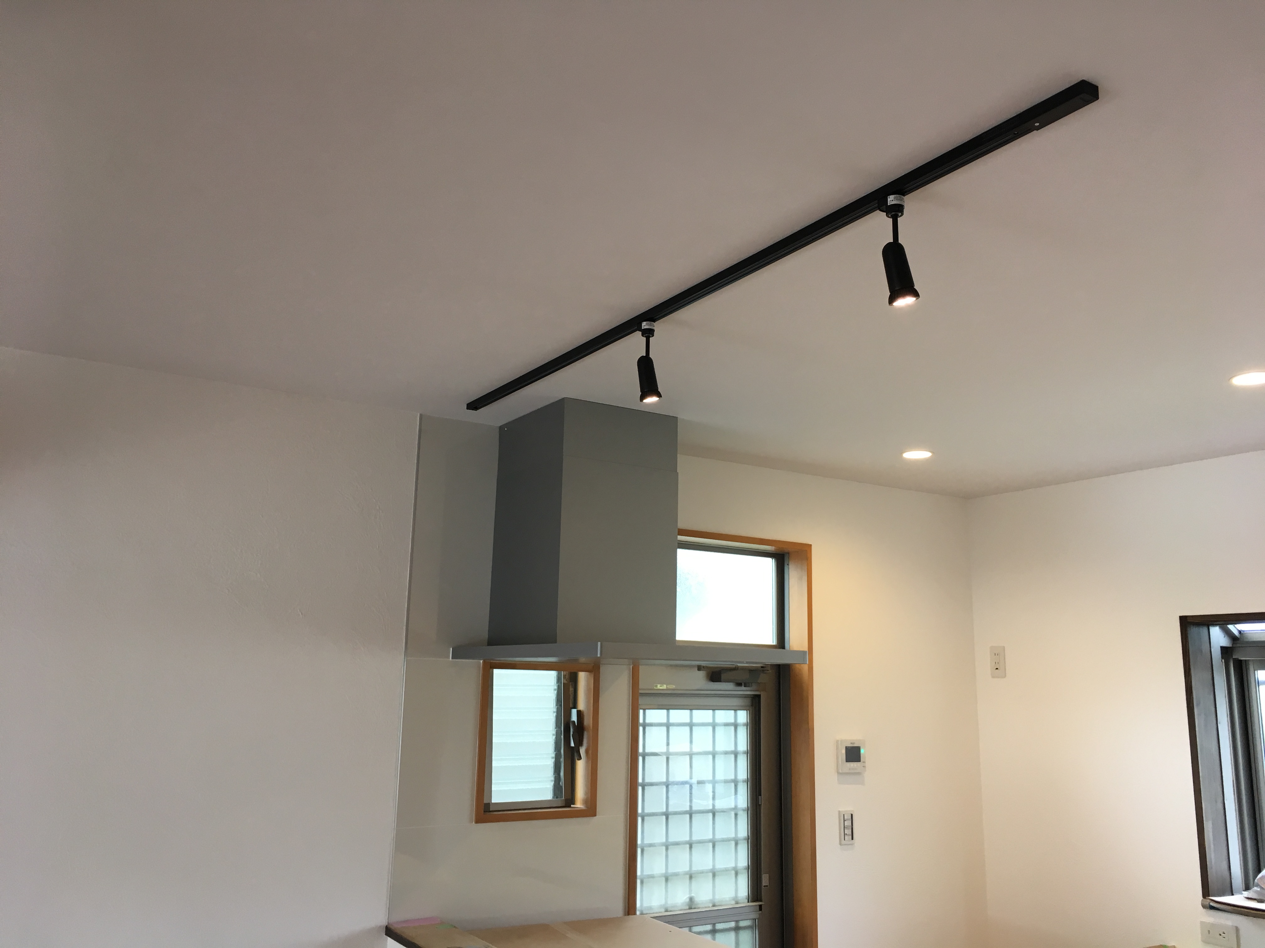 やっぱりライティングレールにスポットですね! レンジフードもスマートです。