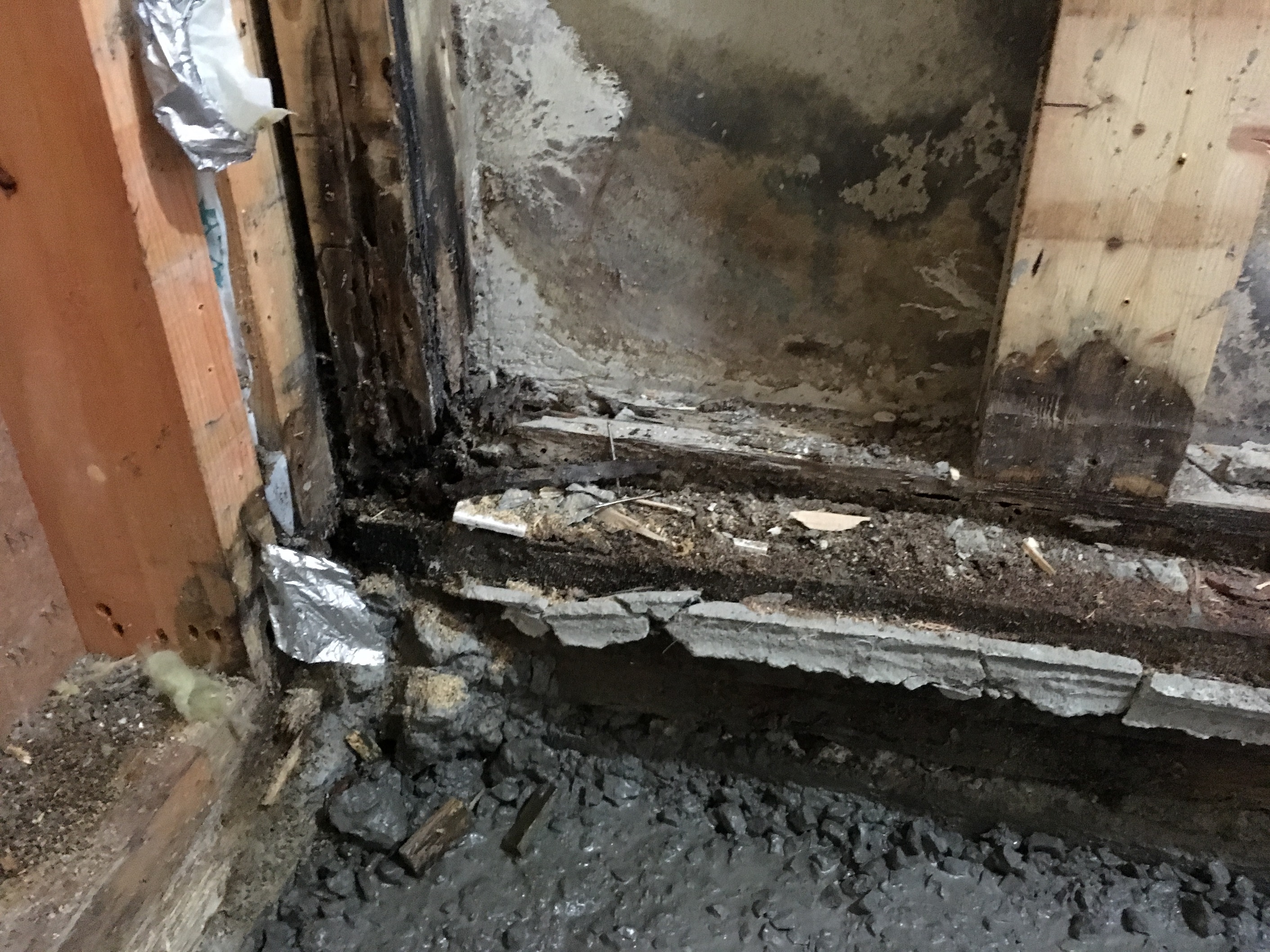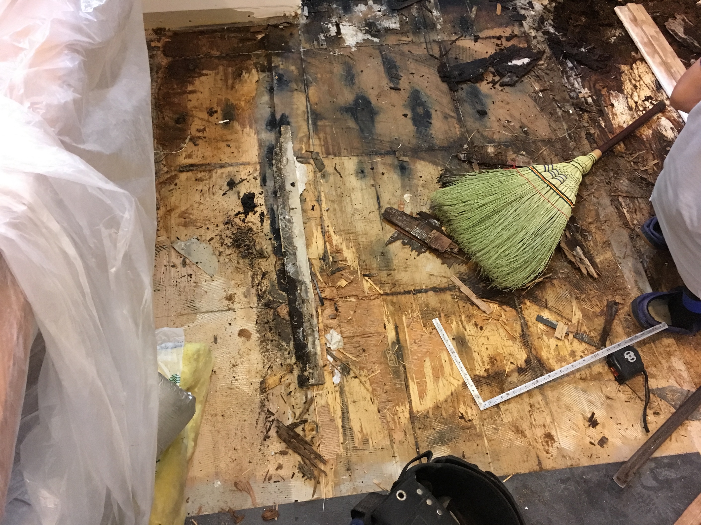 浴室の漏れが、床とその断熱材の間を伝い、洗面の床までボロボロになってしまっておりました。