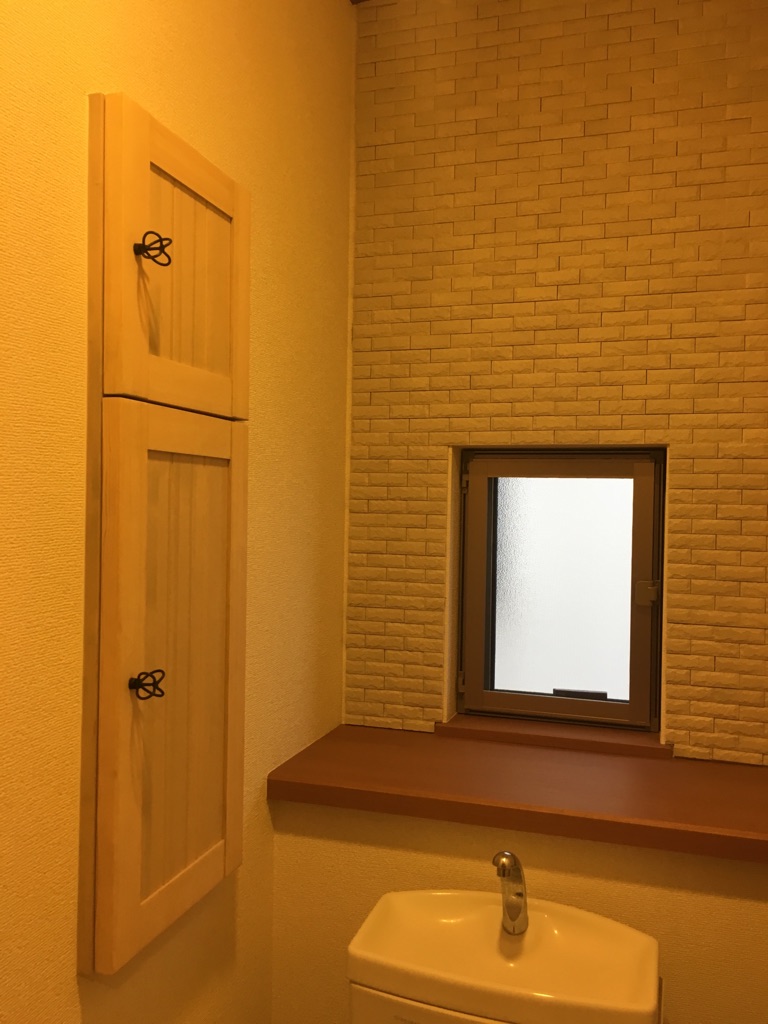 合わせて、収納棚を入れましたが、吊戸は使い勝手が悪いとの事で、今回は、壁面収納を入れさせて頂きました。