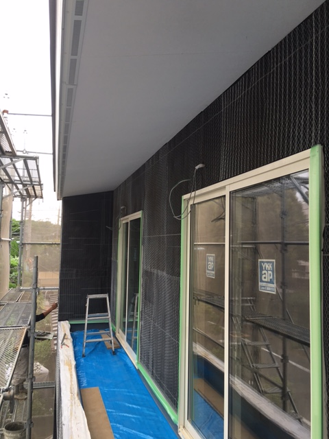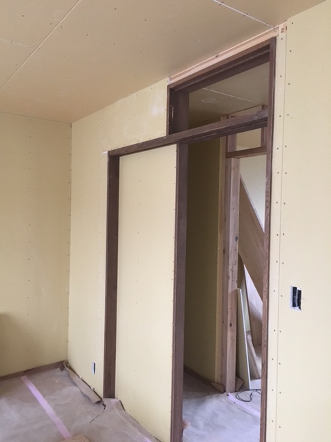 写真は扉が着く前の室内引き戸です。上部に小さな開口がありますが、ここにも扉が取りつきます。