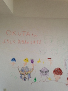 朝現場に行くと かわいいメッセージと似顔絵が(笑)