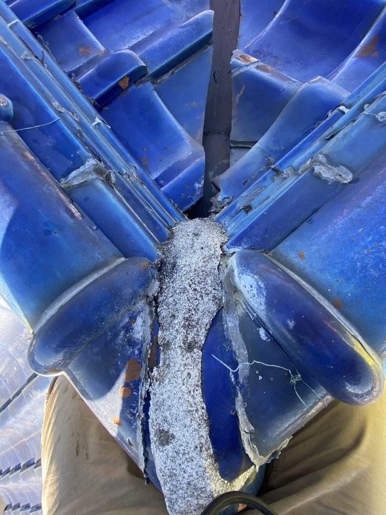 棟の漆喰と谷の交換が必要な状態ですが葺き替えは必要無い状態でした