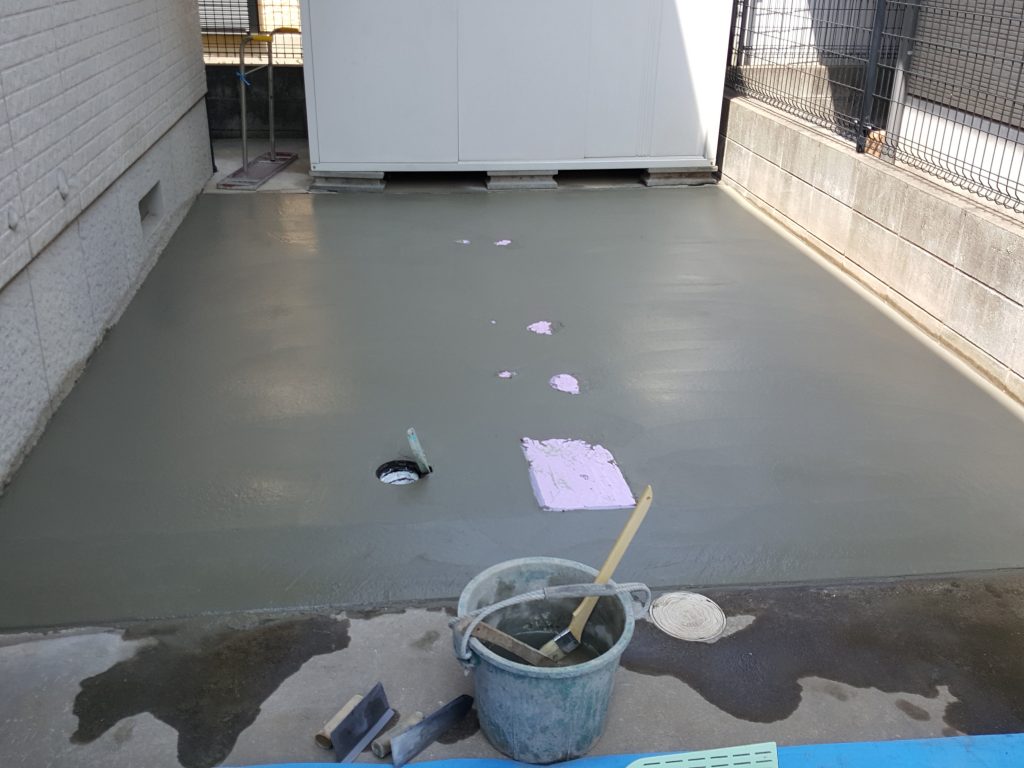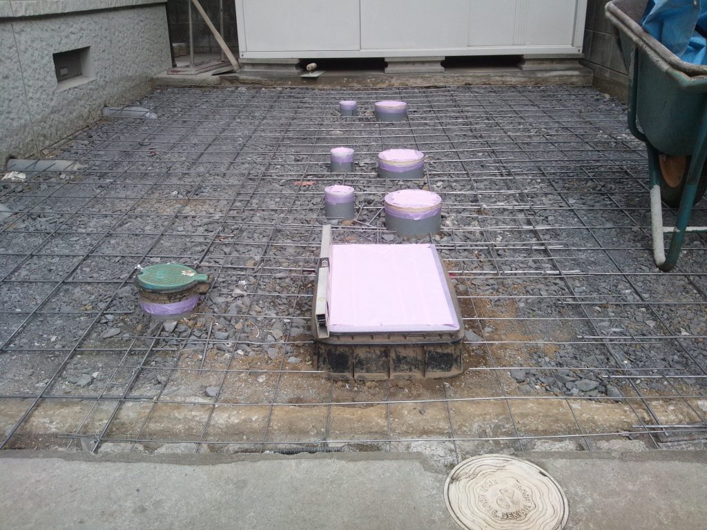 転圧して採石を敷いてからワイヤーメッシュを敷きます