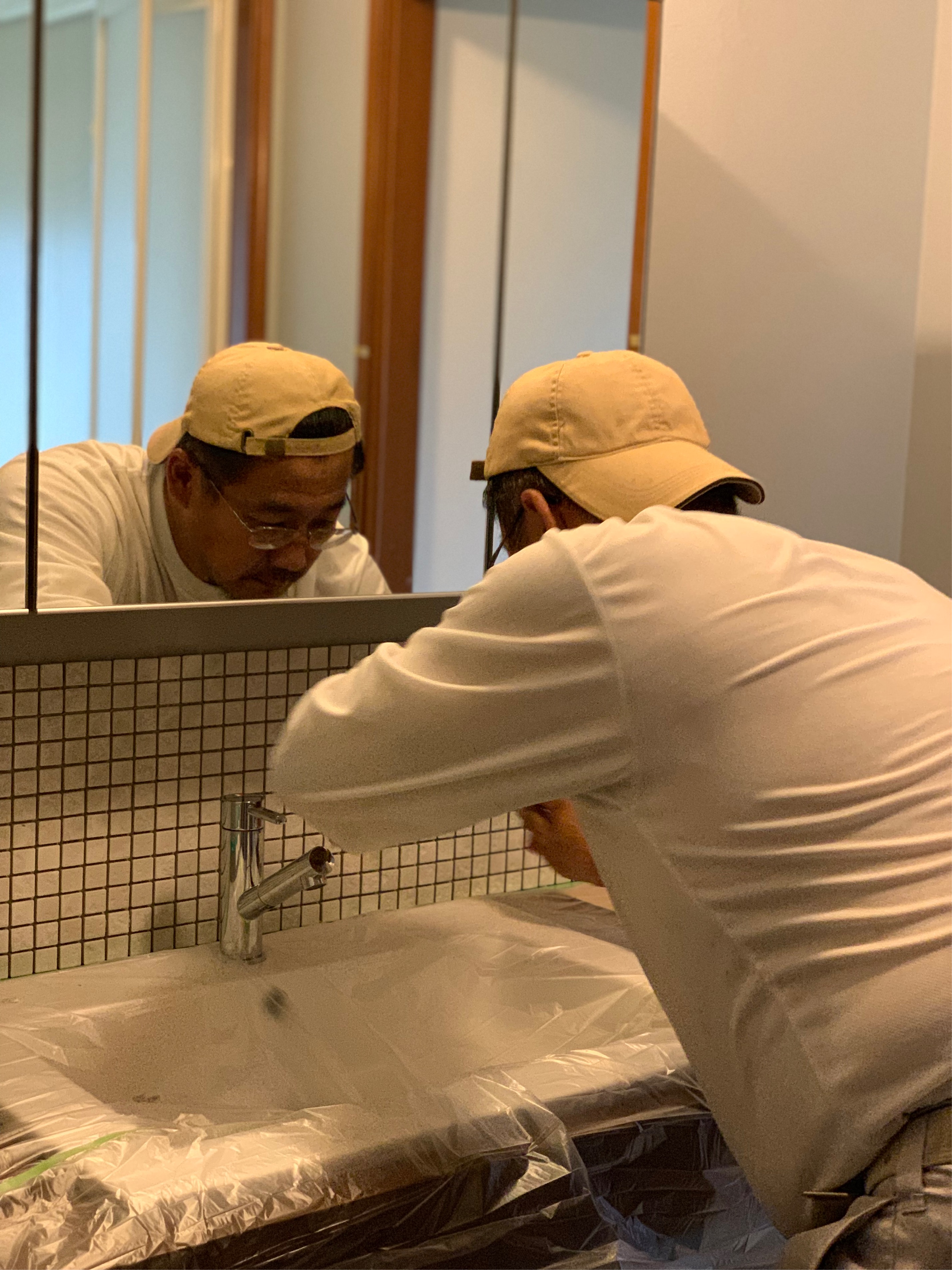 今回はお客様支給の洗面ボウルやミラー、照明器具を取り込んでのリフォームをご紹介します。