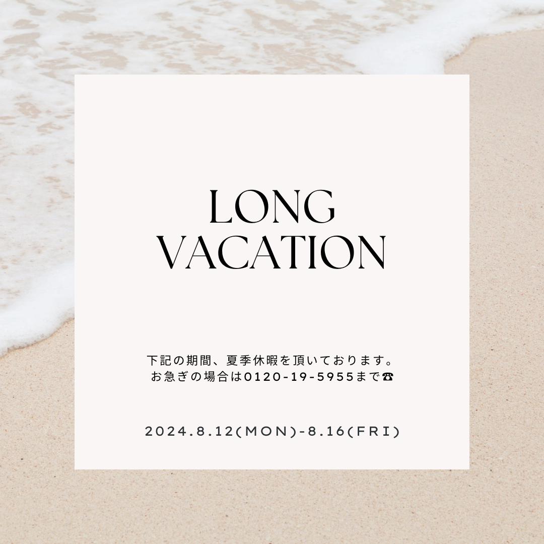 年に4回のまとまった休暇、 "ロングバケーション" 夏のおやすみを頂戴します。 2024年8月11日(日)18:00まで営業 ◆夏季休業期間:2024年8月...
