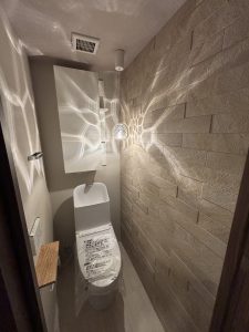 皆さんこんにちは。 本日は先日完工した現場の一部をお見せします。 一面に【LIXIL/エコカラット/ラフクォーツ】を施工し、天井はもともとは一般的なダウンライト...
