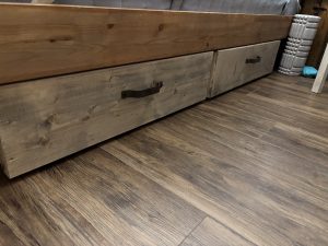 皆様こんにちは~。 本日はDIYの紹介です。 ベッドの下に引出しを作ってみました! 面材は2×6材を墨汁を薄めて色を入れて古材...