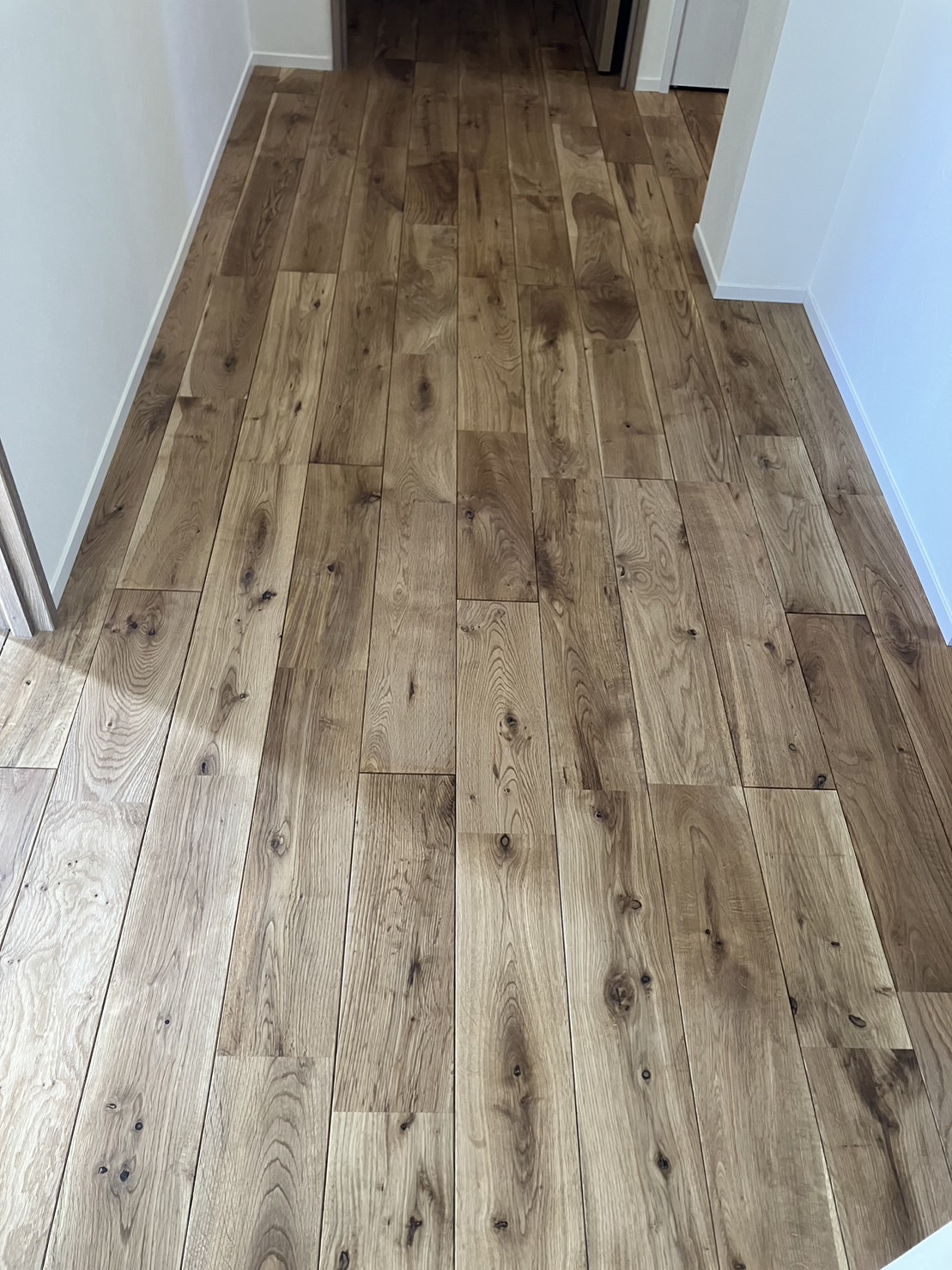今回、2階の床は昨年から新しく発売されたオリジナル建材「ラスティックオーク(ユニ)/ロハスオイルクリア塗装」をご採用いただきました。