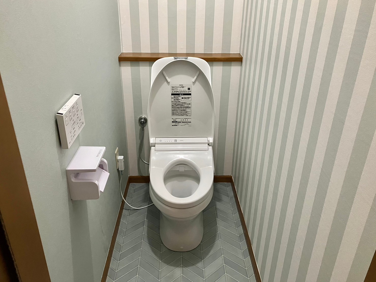 可愛い水色のトイレ 戸建て2階のトイレをリフォームしました。 全面柄の違う水色の配色で可愛いトイレに変身した事例を紹介します。 Beforerenovation  ...