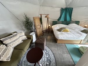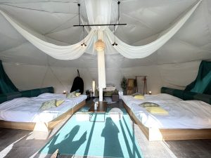 新しい施設なので全て綺麗で、寝るテントの中のインテリアもすごく可愛かったです💛