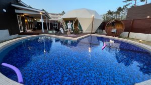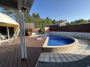 なんとプライベートエリア内に、貸切の温泉・サウナ・プール・焚き火台が付いてるんです✨