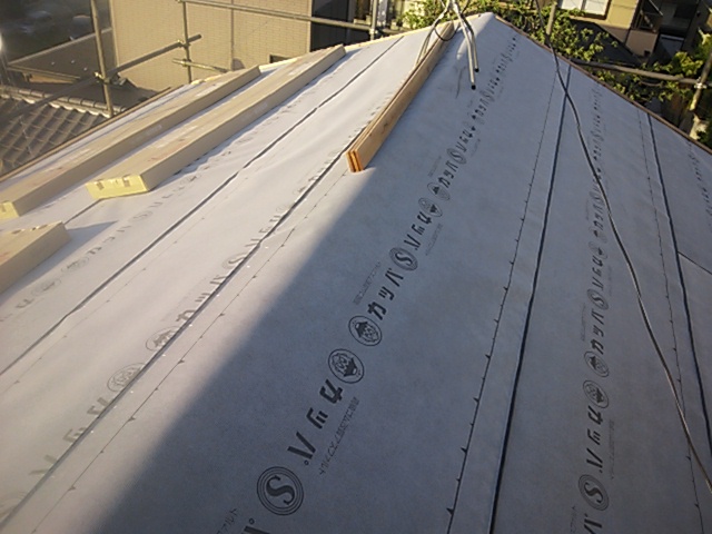 雨水が侵入しないように丁寧に防水シートを貼ったら