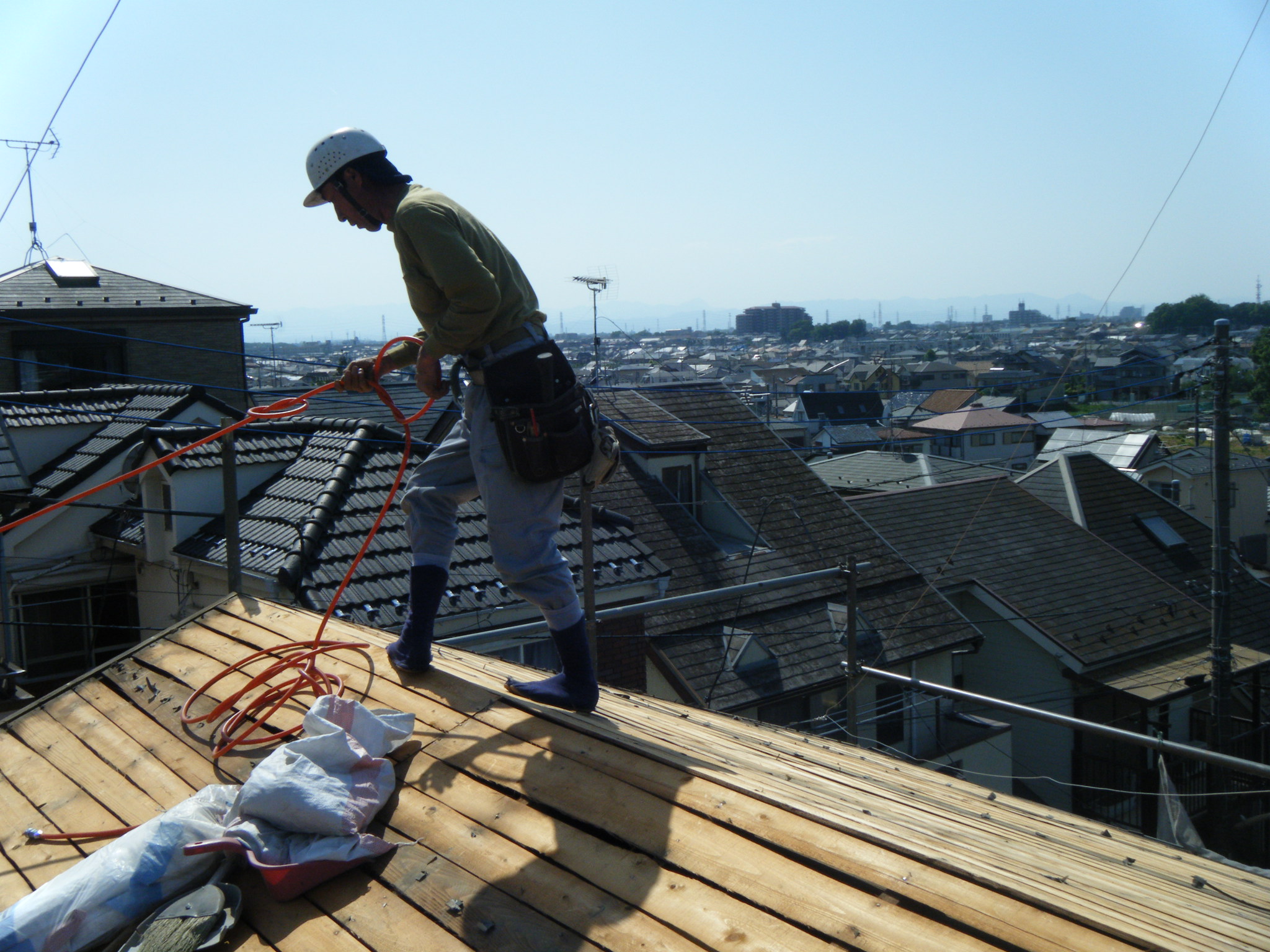合板を張っていき、新しい屋根の下地を作っていきます。