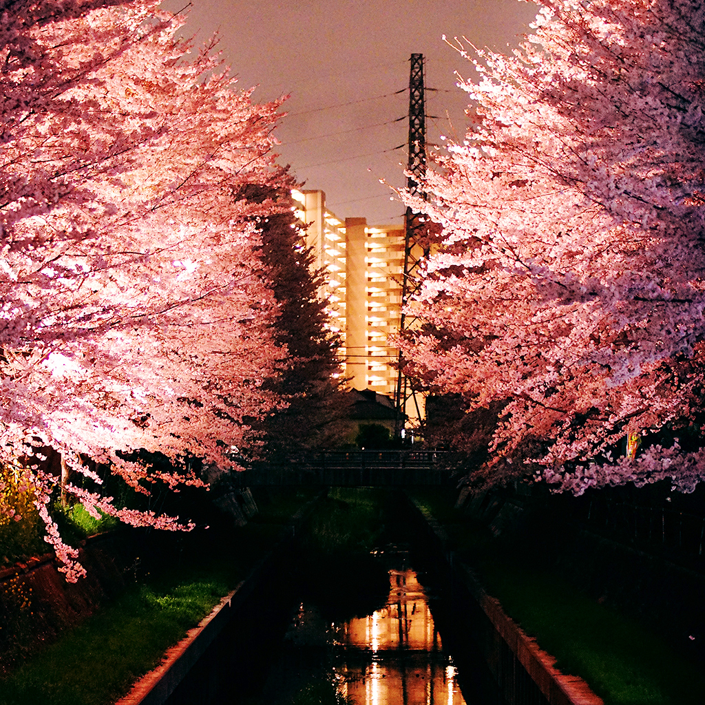 さいたま市与野の霧敷川(鴻沼川)の夜桜です。2016年4月4日の撮影(^^)