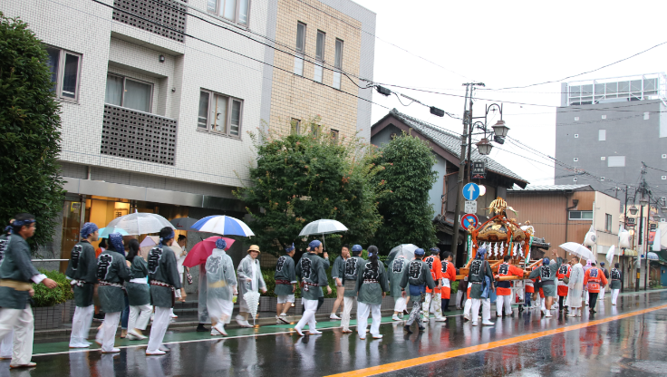 例大祭には毎年、社員の有志が神輿をかついでいます!