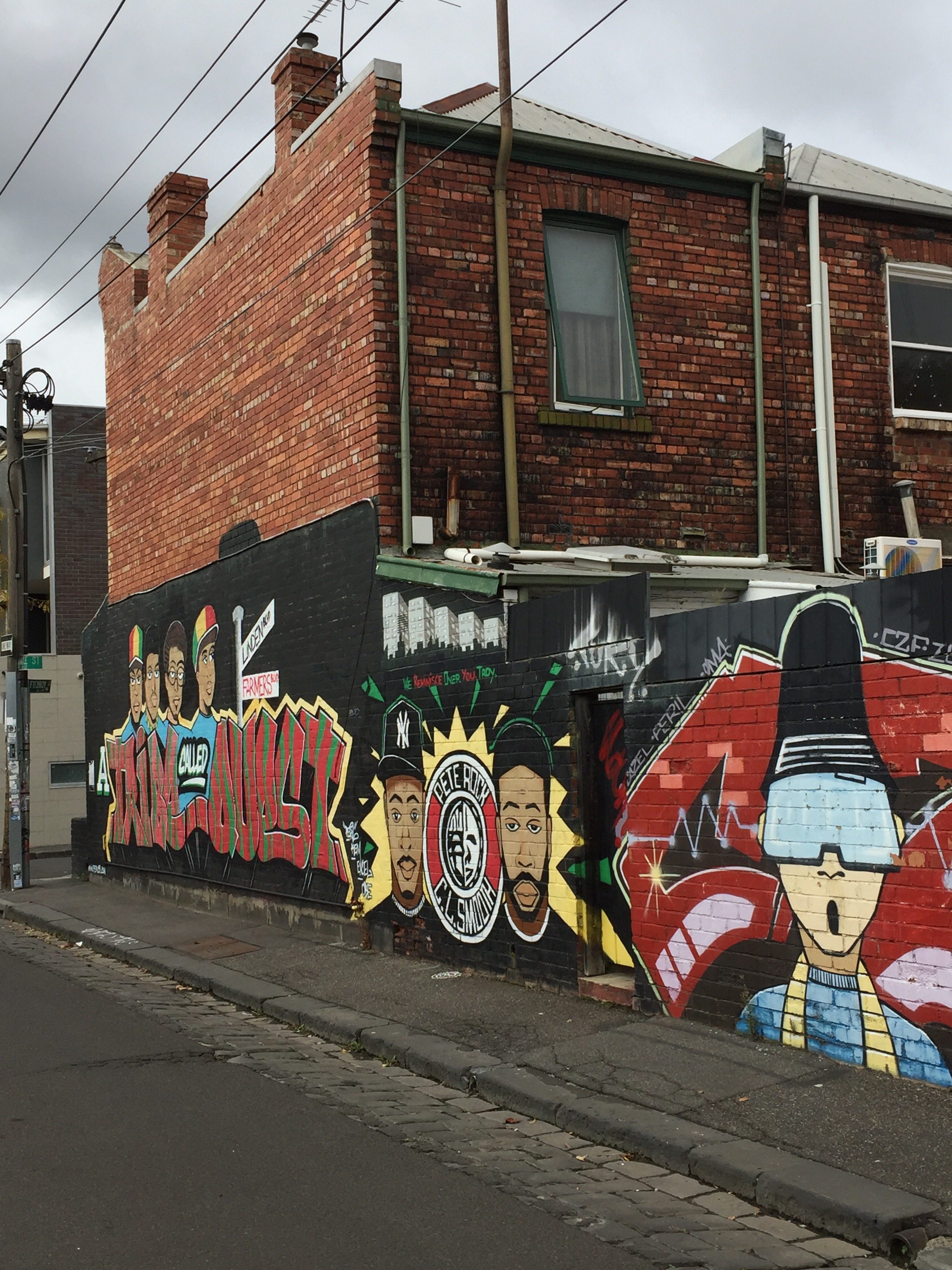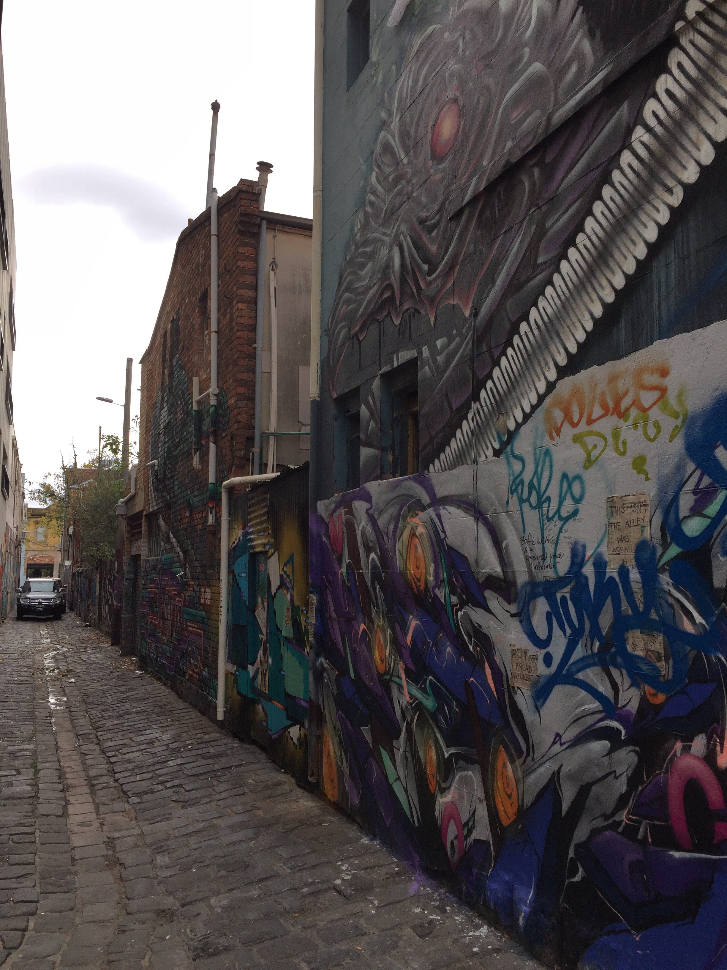 地元の若者に人気のフィッツロイ地区は、おしゃれなバーやレストランで賑わっていました。建物の壁にはストリートアートがあちこちで見られ、すてきな景観演出になっていました。