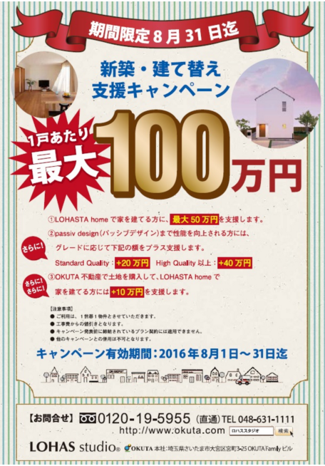 【最大100万円支援】「LOHASTA home」新築・建て替え支援キャンペーン!(株式会社OKUTA Archives Archives ブログ@OKUTAのブログ) リフォームのオクタ