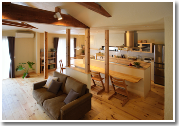 「LDKを通って子供部屋へ行ける、LDKが家族の交流の場所であり続けるように工夫して欲しい」という施主の要望から、LDKを中心に子供部屋への動線を重視した間取りへ変更。