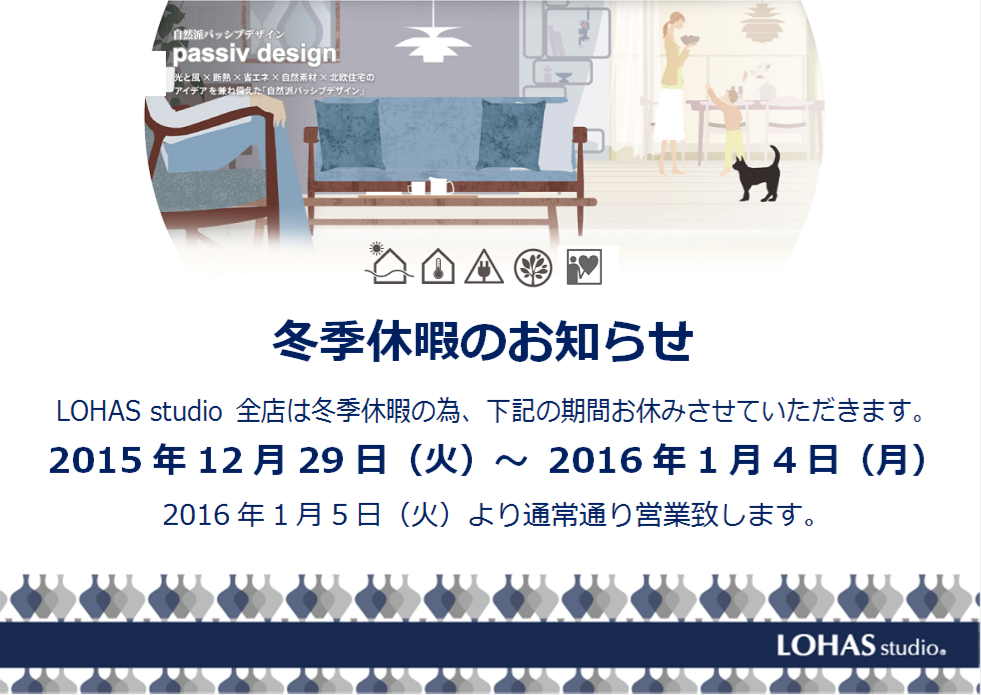 LOHAS studioでは、冬季休業の期間を下記の通りとさせていただきます。