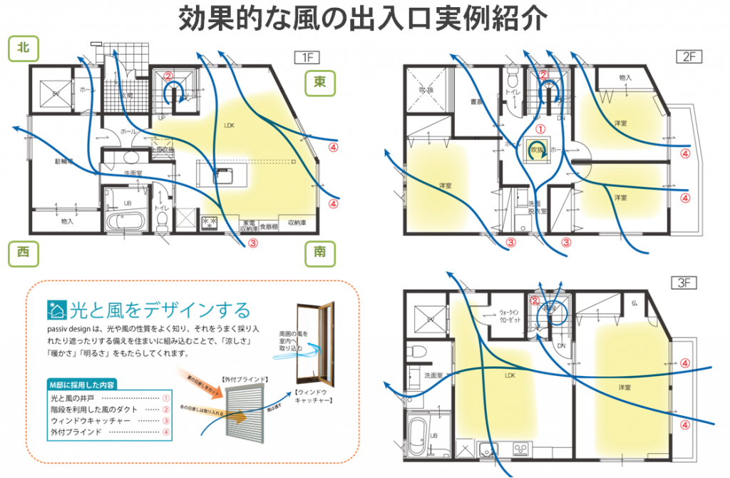 太陽の光を取り込む工夫と同時に、風の通り道の工夫も大切です。