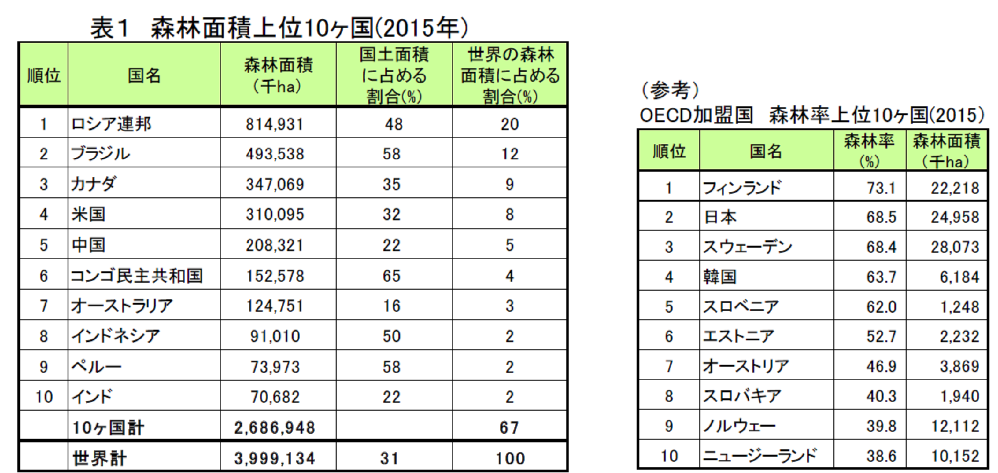 フィンランドに次いで2位と、世界でも有数の森林国です。