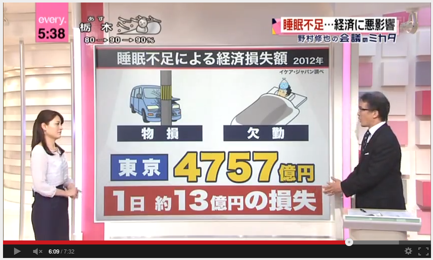 寝不足における経済損失は、なんと4,757億円だそうです。
