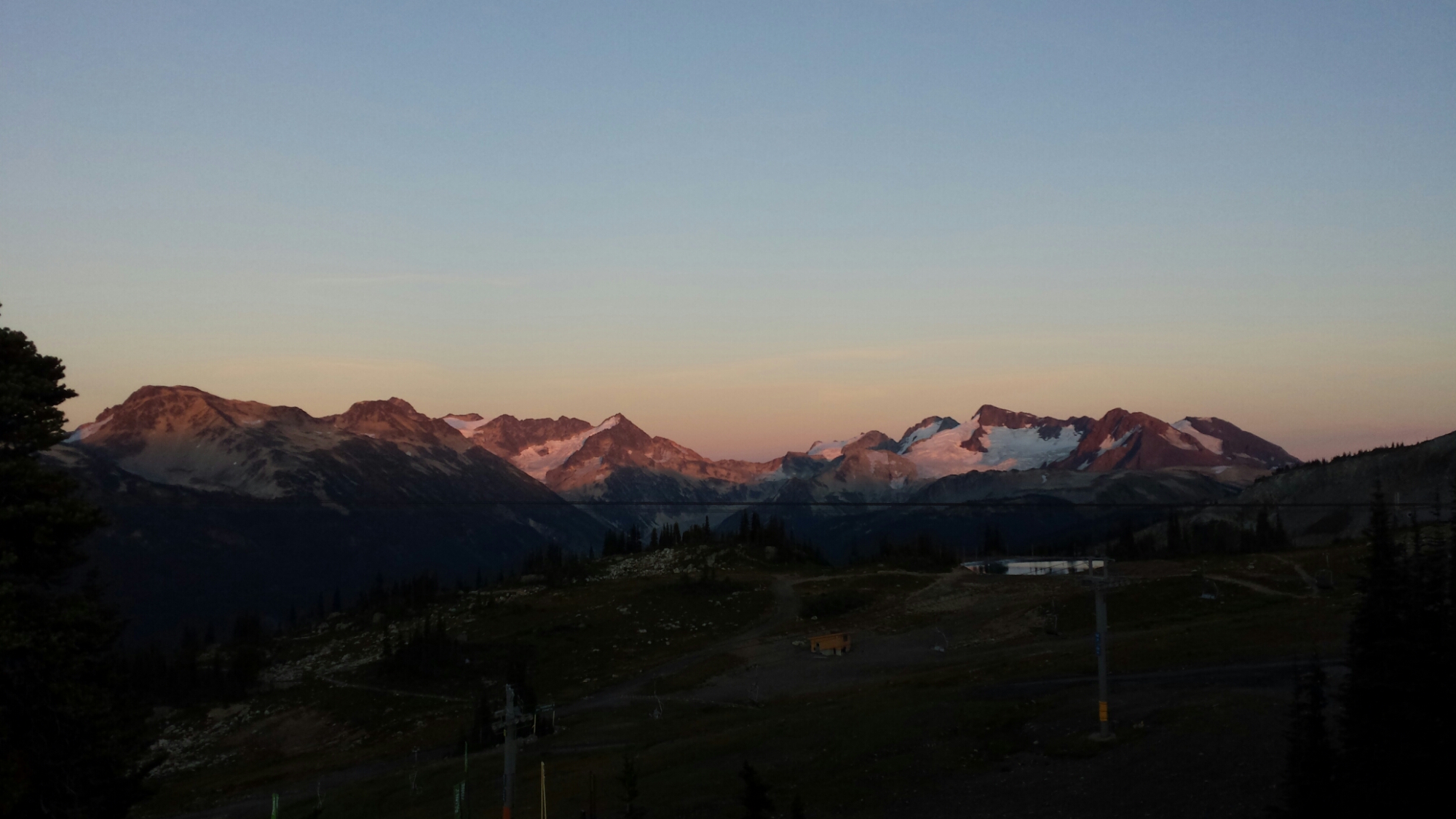 ゴンドラに乗り、北米の山々を見て陽が落ちるのを眺めていました。