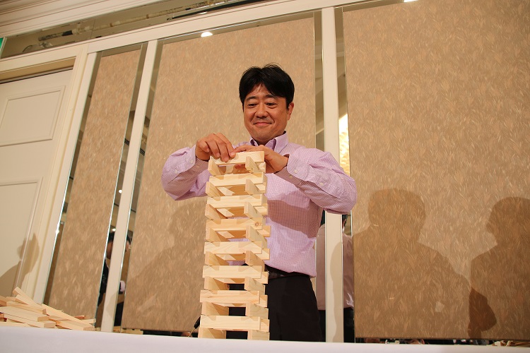 まずは、恒例のイベント合戦 積み木大会。バランス感覚が大事です。