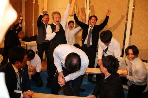 なんと、「電気屋」でした。 ものスゴイ熱気と歓声の中、見事に一本勝ちの勝利でした。