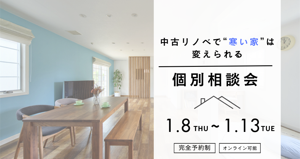 1/8-1/31【中古リノベ 個別相談会】~中古リノベのプロが個別にアドバイス~/参加費無料・予約制(同業者の方ご遠慮ください)