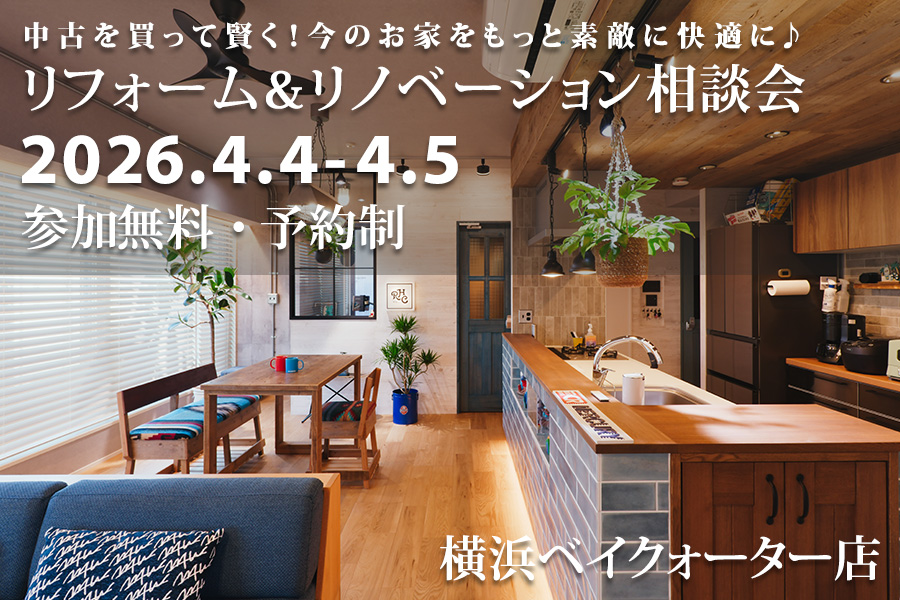 LOHAS studio 横浜ベイクォーター店にて、4/4(土)-4/5(日)の2日間、[予約制]リフォーム&リノベーション無料個別相談会を開催致します。中古を買って賢く!お得に♪ ちょっと見積りを頼む前にお気軽に相談会へ! ドラマで見るような家づくり・・・。私たちと一緒に、リフォームのお話をしませんか?