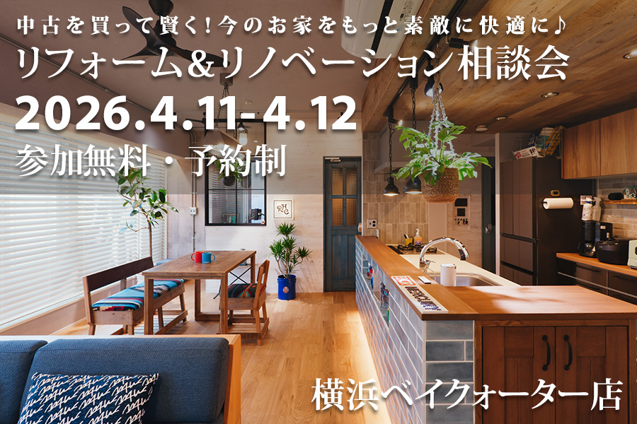 LOHAS studio 横浜ベイクォーター店にて、4/11(土)-4/12(日)の2日間、[予約制]リフォーム&リノベーション無料個別相談会を開催致します。中古を買って賢く!お得に♪ ちょっと見積りを頼む前にお気軽に相談会へ! ドラマで見るような家づくり・・・。私たちと一緒に、リフォームのお話をしませんか?