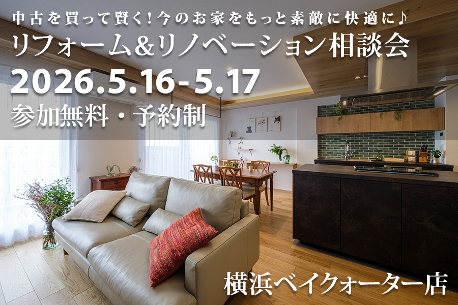 LOHAS studio 横浜ベイクォーター店にて、5/16(土)-5/17(日)の2日間、[予約制]リフォーム&リノベーション無料個別相談会を開催致します。中古を買って賢く!お得に♪ ちょっと見積りを頼む前にお気軽に相談会へ! ドラマで見るような家づくり・・・。私たちと一緒に、リフォームのお話をしませんか?
