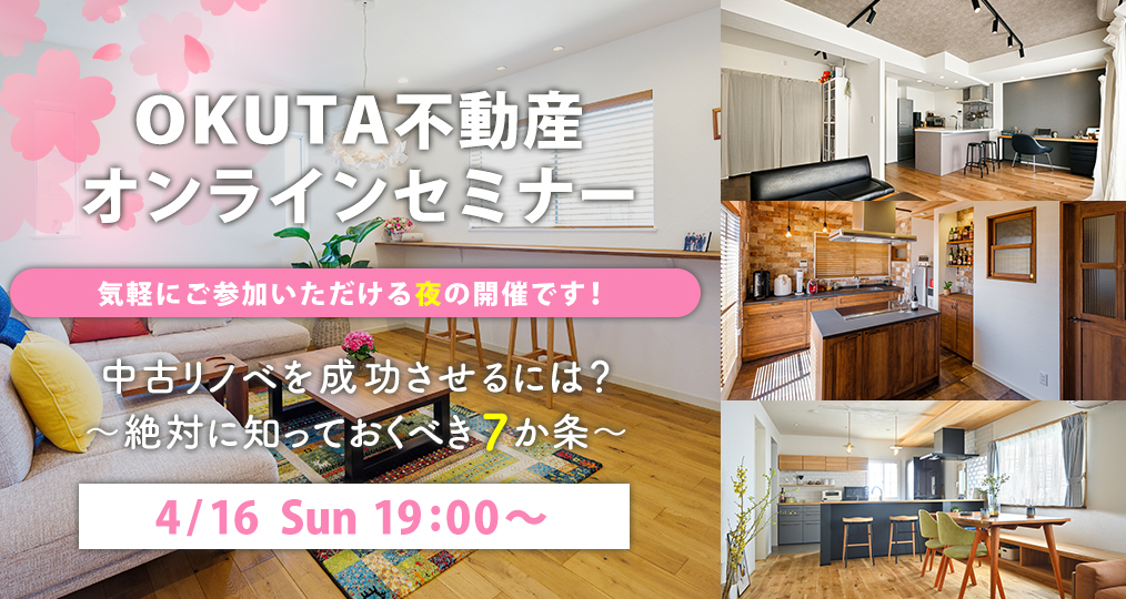 12/14【OKUTA不動産オンラインセミナー】中古リノベで夢のマイホームを実現【リフォーム・リノベ】一体型住宅ローンを知ろう!/参加費無料・予約制(同業者の方ご遠慮ください)