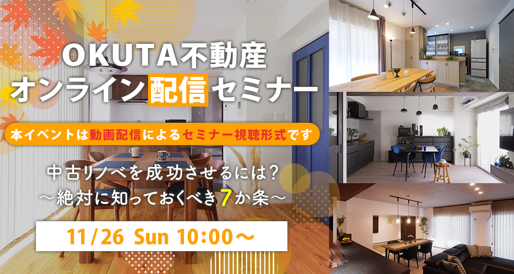 12/14【OKUTA不動産オンラインセミナー】中古リノベで夢のマイホームを実現【リフォーム・リノベ】一体型住宅ローンを知ろう!/参加費無料・予約制(同業者の方ご遠慮ください)