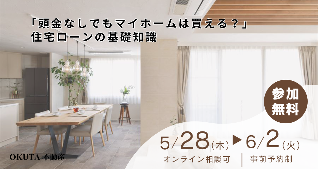 5/28-6/2【OKUTA不動産 個別相談会】「頭金なしでもマイホームは買える?」住宅ローンの基礎知識/参加費無料・予約制(同業者の方ご遠慮ください)