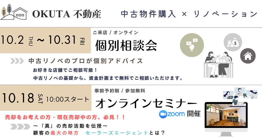 12/1-12/28【OKUTA不動産 個別相談会】~中古リノベのプロが個別にアドバイス~/参加費無料・予約制(同業者の方ご遠慮ください)