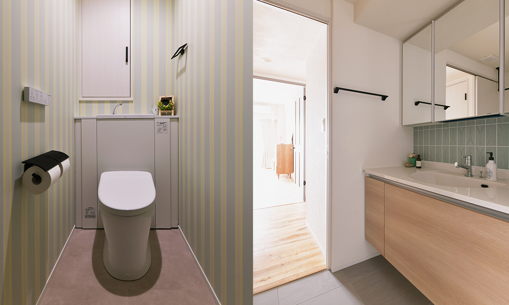 ・輸入クロスを設えたトイレ