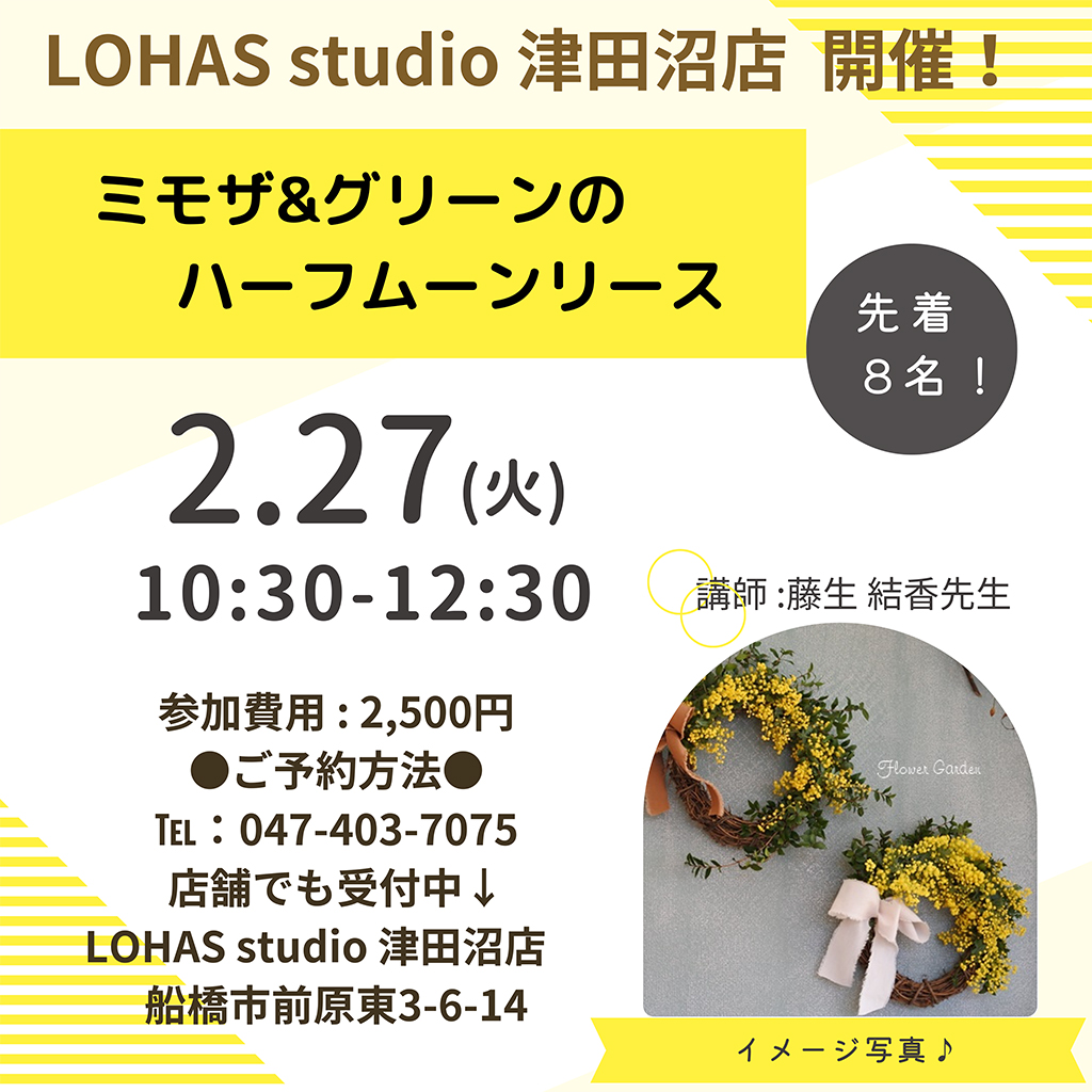 | 会場 | LOHAS studio 津田沼店:千葉県船橋市前原東3-6-14 メゾン都築1F |