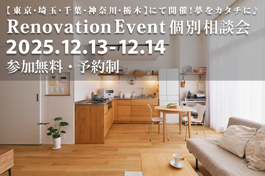 12/13-12/14【東京・埼玉・千葉・神奈川】夢をカタチに!リフォーム&リノベーション無料個別相談会【予約制】