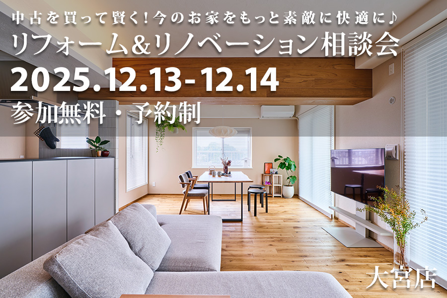 LOHAS studio 大宮店にて、12/13(土)-12/14(日)の2日間、[予約制]リフォーム&リノベーション無料個別相談会を開催致します。中古を買って賢く!お得に♪ ちょっと見積りを頼む前にお気軽に相談会へ! ドラマで見るような家づくり・・・。私たちと一緒に、リフォームのお話をしませんか?