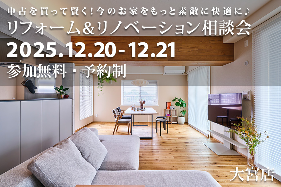 LOHAS studio 大宮店にて、12/20(土)-12/21(日)の2日間、[予約制]リフォーム&リノベーション無料個別相談会を開催致します。中古を買って賢く!お得に♪ ちょっと見積りを頼む前にお気軽に相談会へ! ドラマで見るような家づくり・・・。私たちと一緒に、リフォームのお話をしませんか?