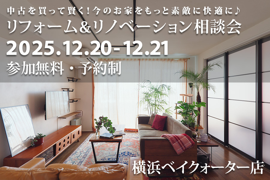 LOHAS studio 横浜ベイクォーター店にて、12/20(土)-12/21(日)の2日間、[予約制]リフォーム&リノベーション無料個別相談会を開催致します。中古を買って賢く!お得に♪ ちょっと見積りを頼む前にお気軽に相談会へ! ドラマで見るような家づくり・・・。私たちと一緒に、リフォームのお話をしませんか?